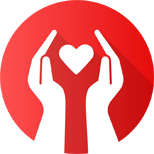 Hands with heart flat Nonprofit organization and love.